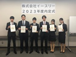2022.10.12news 2023年度新卒採用者内定式を行いました!! 2022年10月3日、当社記念すべき1期目となる新卒内定者の内定式を行いました。 この度、6名のフレッシュで素敵な方々に入社を決めていただき、ビシッとスーツを身にまとい、晴れの式典に参加頂きま